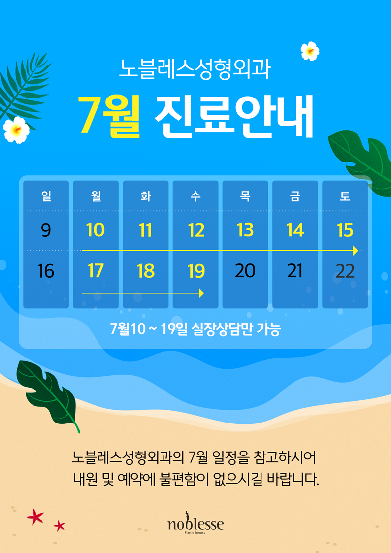 노블레스성형외과 7월 진료안내❤️